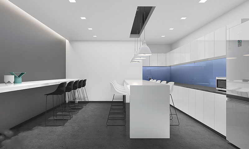 虽然极简风主张“减少,减少,再减少”的原则,但不意味着在极简风的设计中丢失细节,相反,极简风办公空间更加注重对细节的处理。在极简风的办公空间中,表面光洁的白色天花或者墙面,可能是由十几道工序制成,因此极简主义在某种程度上意味着高雅难度的技术过程。